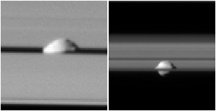 Le satellite Pan vu par Cassini au milleu de la division d'Encke